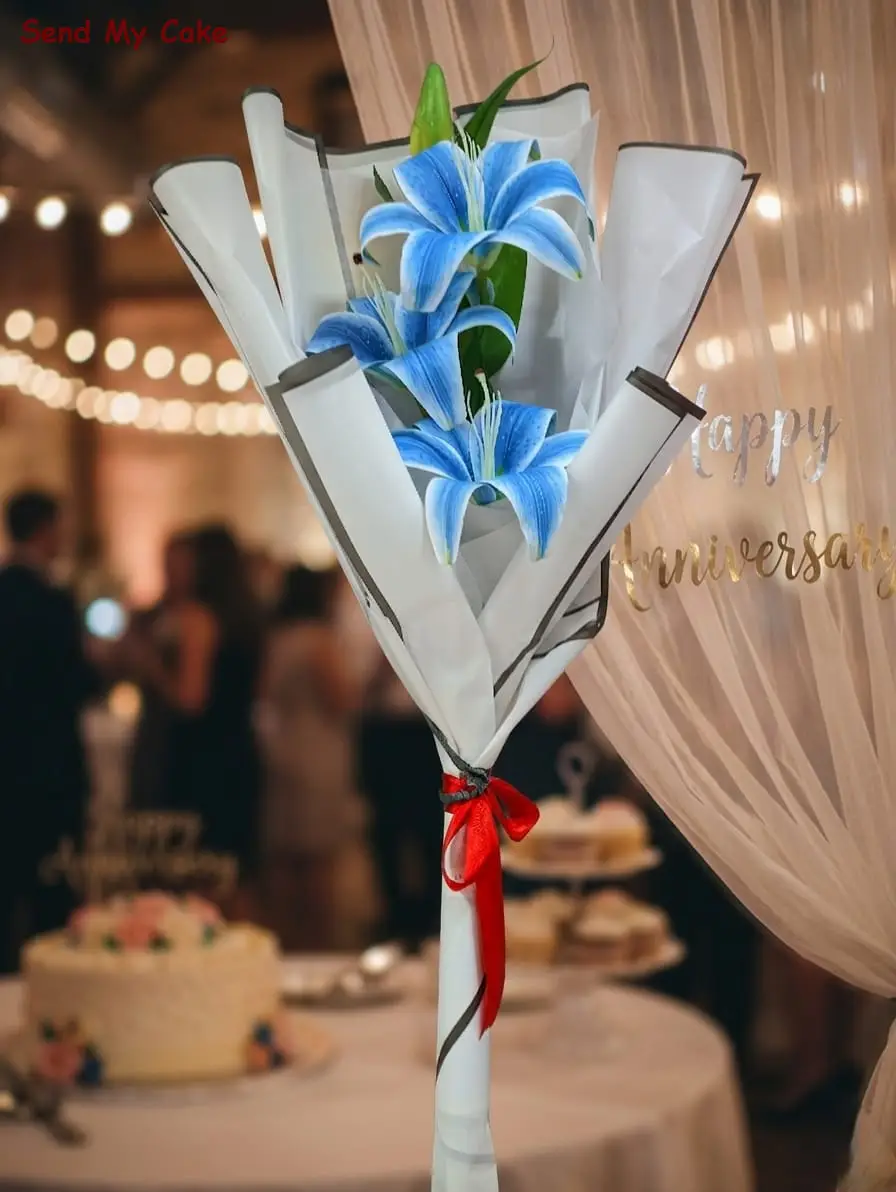 • Flower Varieties: 3 Premium Blue Lilies.