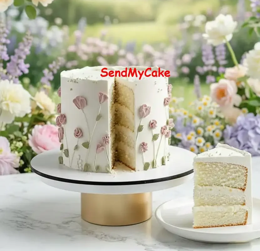 A majestic pink castle cake with edible turrets and floral accents, perfect for your little princess. Perfect for a birthday celebration.