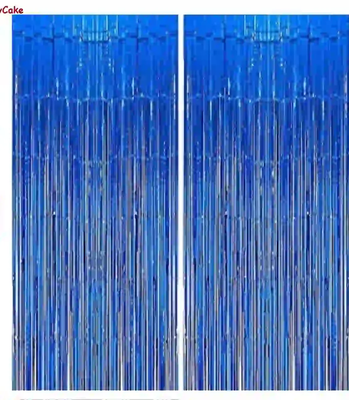 Elevate your party atmosphere with our vibrant Metallic Blue Foil Fringe Curtain. While the product image demonstrates the dense, layered effect of two curtains hung together, this single-piece packet provides a high-quality, shimmering tinsel backdrop that is perfect for doorways, photo booths, or wall accents. Its brilliant blue metallic finish catches the light beautifully, making it an ideal choice for birthdays, baby showers, or any blue-themed celebration.