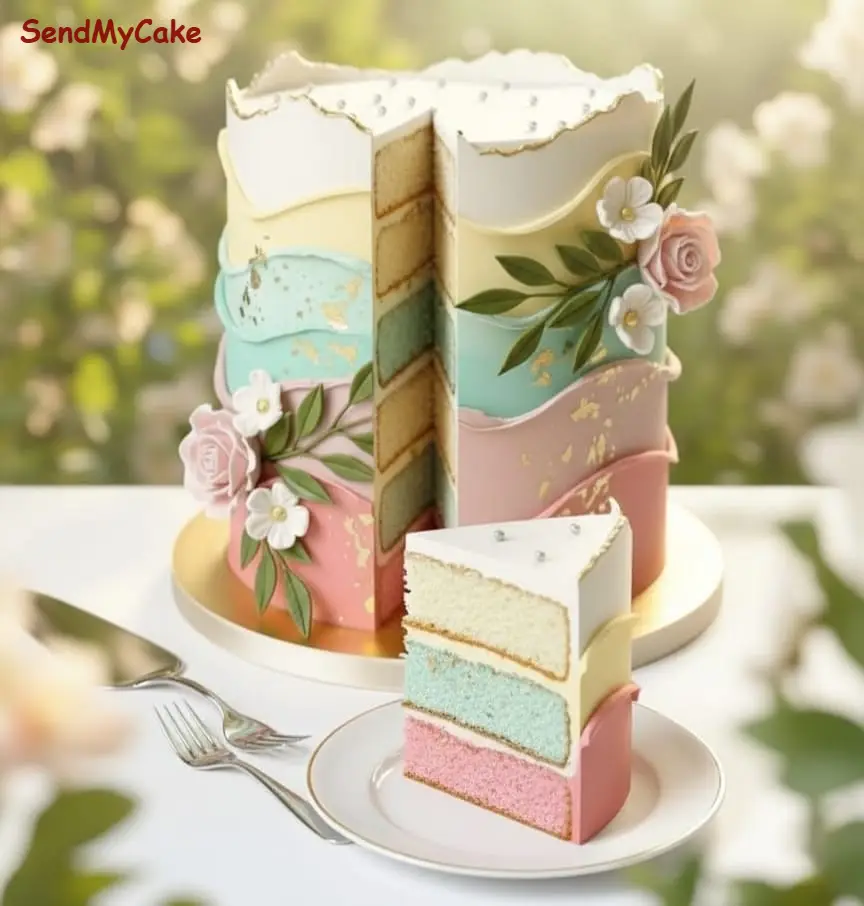 Ooh la la! The Parisian Macaron Chic Cake is topped with delicate French macarons and a drip glaze. A taste of Paris for the birthday girl.